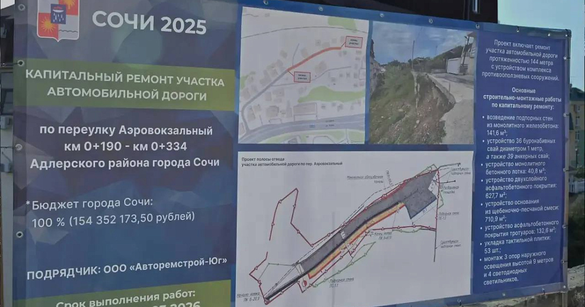 К марту 2026 года подрядчики завершат противооползневые сооружения, водоотведение, уложат асфальт и благоустроят участок почти в 150 метров. Из городского бюджета на эти цели выделено более 150 млн рублей.
