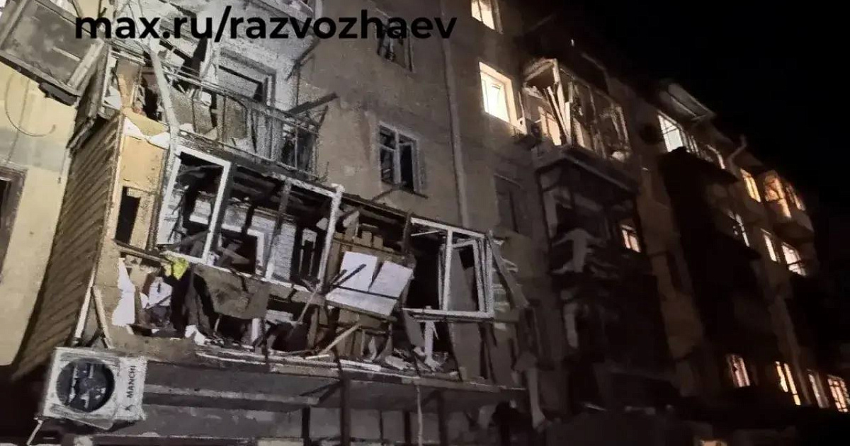Губернатор Михаил Развожаев сообщил о сильных повреждениях пятиэтажки на улице Ефремова, 8. Сбитый БПЛА с поражающими шариками и взрывчаткой упал рядом с домом.