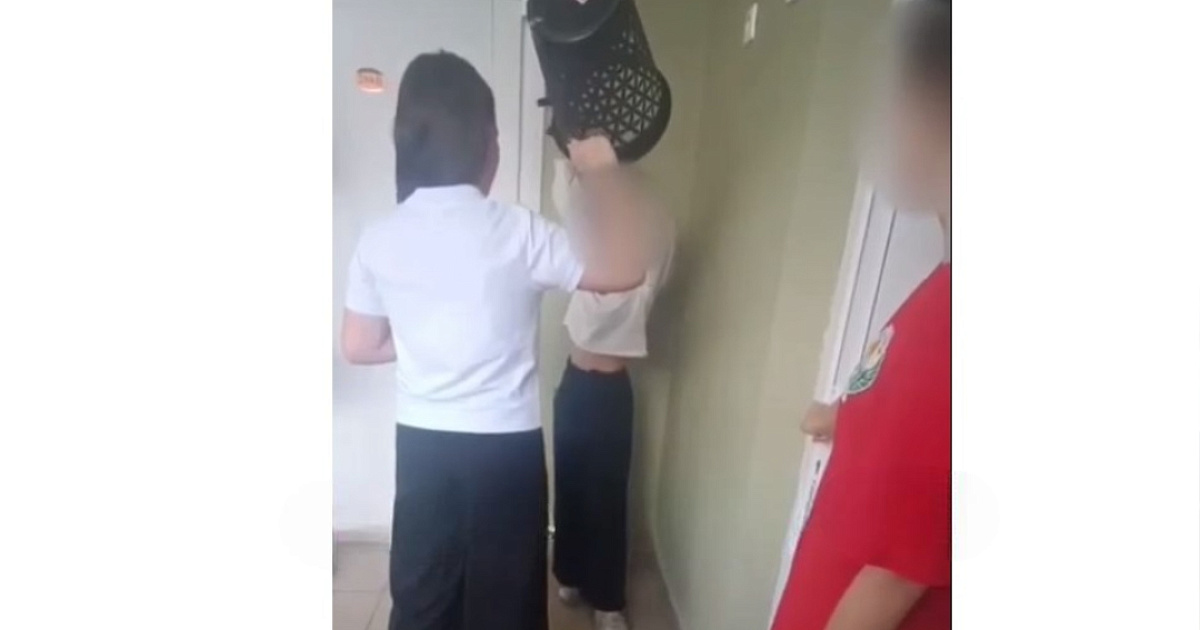 На кадрах видно, как группа девочек заперла сверстницу в раздевалке. Девочки наносили пощечины однокласснице, надели ей на голову мусорное ведро и снимали происходящее на телефон.