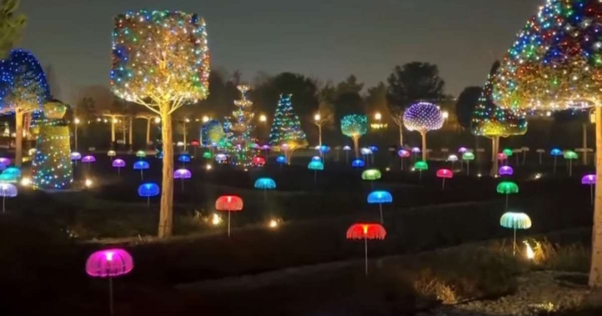 «Московский парк Галицкого СКАЗОЧНО украсили к Новому году. Повсюду светящиеся деревья, цветы, переливающиеся красками, огромное количество елок и других украшений», — говорится в публикации.