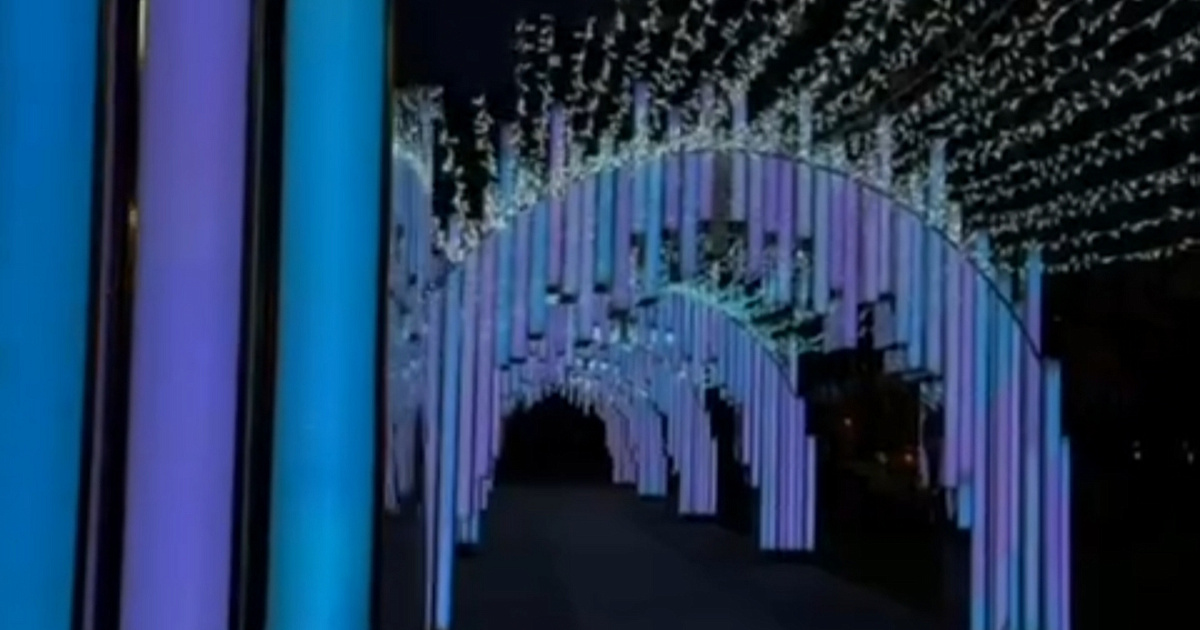 В центре Краснодара начали тестировать инсталляцию, установленную к Новому году. На улице Красной уже появились светящиеся арки, соединённые гирляндами.