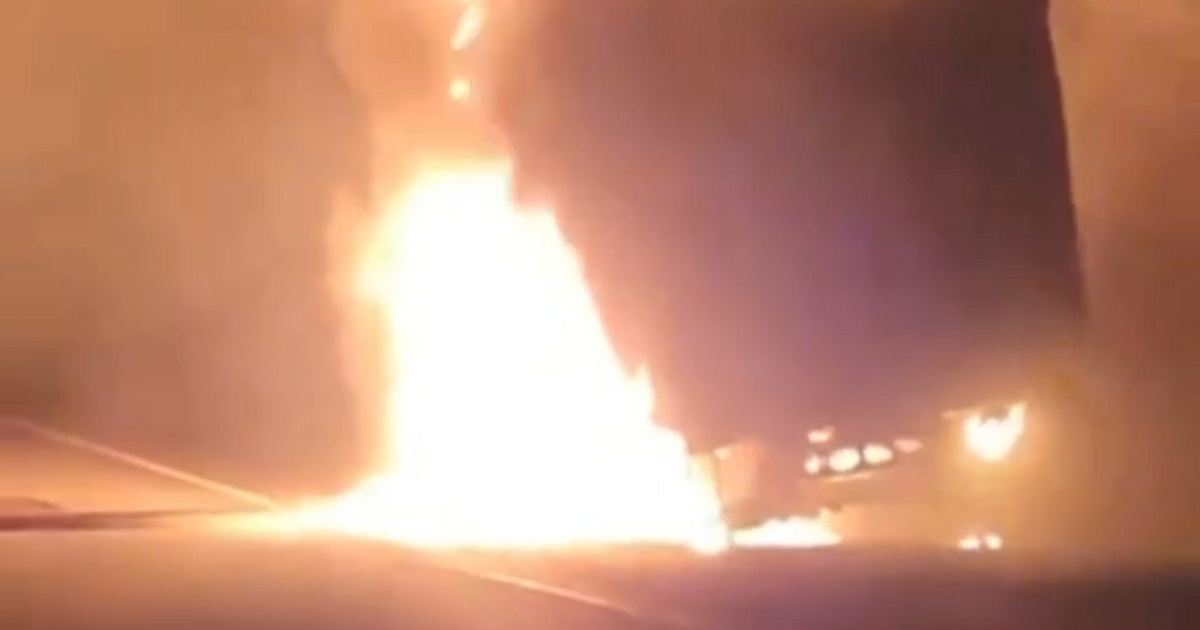 Прибывшие на место происшествия правоохранители временно перекрыли проезжую часть для обеспечения безопасности работ по ликвидации возгорания. В настоящее время движение транспорта осуществляется в реверсивном режиме по одной полосе.