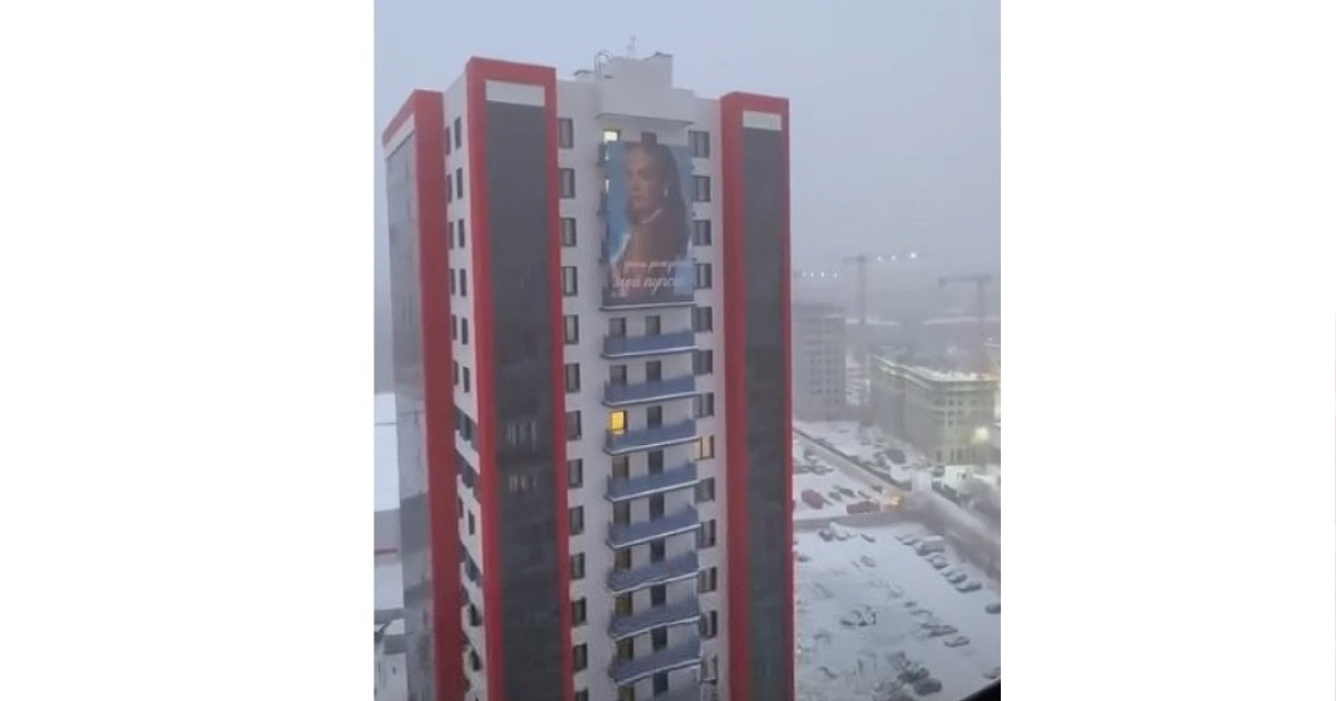 Жильцы одного из ЖК в Казани утром заметили на фасаде многоквартирного дома огромную «женщину» и вызвали полицию. На деле это оказался романтический сюрприз от мужа — гигантский баннер с фото супруги и надписью «С днем рождения, мой пупсик».