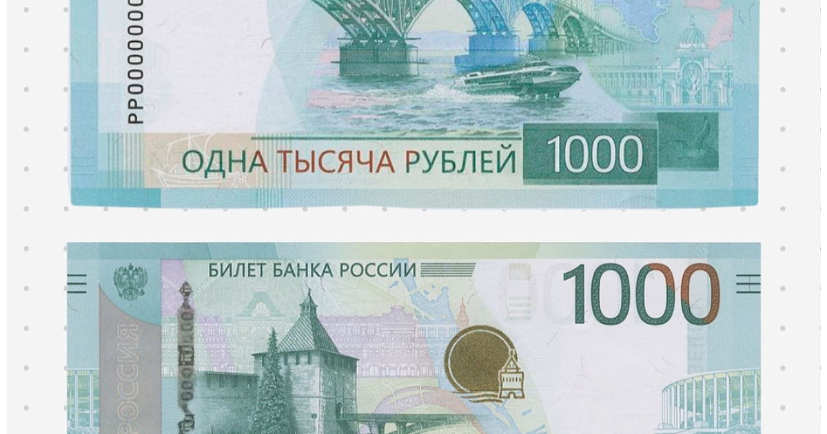 Тысячерублевая банкнота сохранила цветовую палитру, она выполнена в бирюзовой гамме. Купюра имеет усиленный защитный комплекс, сообщает пресс-служба Банка России.
