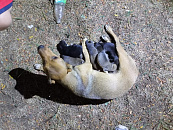 В Лабинске собака с щенками застряла под бетонной плитой