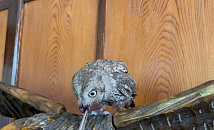 Сочинский совенок Географ, лакомящийся куриными деликатесами, попал на видео