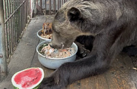 Сочинские специалисты показали, как бурый медведь Винни ужинает деликатесами